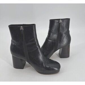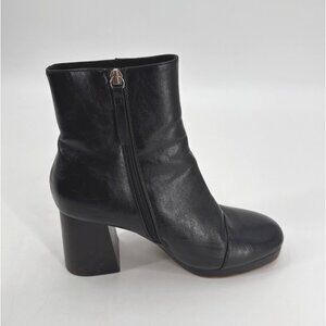 ASOS Design Black Leather Ankle Boots Mid Block Heel Zip Size 7 Womens