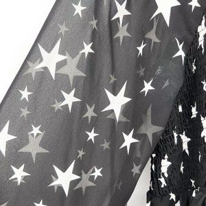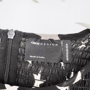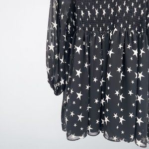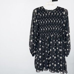 Description: ASOS Design: Black Made in India Star Dress With Sheer Sleeves and Ruched Bodice - 14
