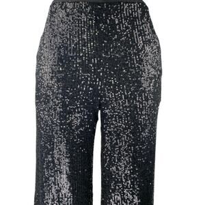 ASOS Design Black Sequin Shimmer Glitter Wide Leg High Waist Trousers Pants Sz 4