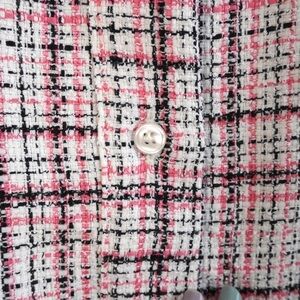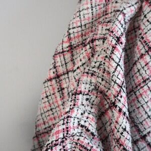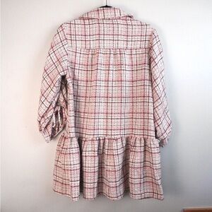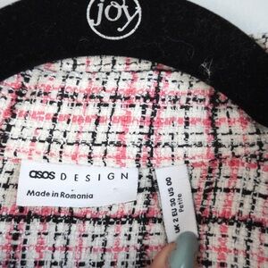 This is an Asos Design boucle smock mini shirt dress with a peplum hem in pink, white and black coloring. This is a size 00 (is oversized so check measurements to make sure they will work for you), and in EUC. Has button closure and collared neckline, long sleeve with ruching along the outside.