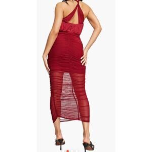 ASOS Design Burgundy Bodycon Halter mesh ruched midi dress Stretch in Size 12