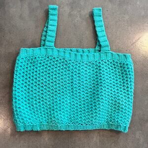 ASOS Design CURVE Crochet knitted cami waffle stitch teal womens Large crop top tag size US 14 made of 100% Acrylic, stretchy material preworn great conditions, plus size