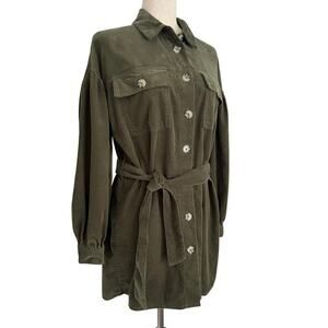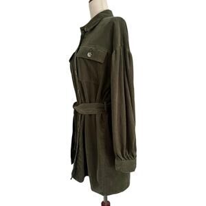 ASOS Design Cord Mini Shirt Dress Women’s Size 4 Green Belted Corduroy
