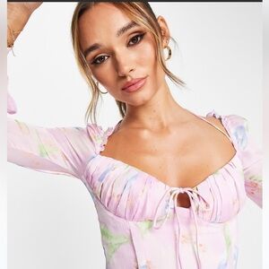 ASOS Design Corset Top With Ruffle Shoulder In Pink Occasion Floral Print Size 4