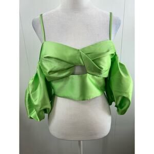 NWOT ASOS Design Cropped Puff Sleeve Lime Green Top Size 8