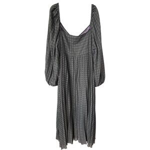This ASOS Design Curve long dress features a chic gray checkered pattern with delicate purple embroidery on the bodice. Crafted from 100% polyester, the design includes long puff sleeves and a flowing silhouette that offers comfort and sophistication.