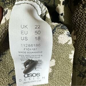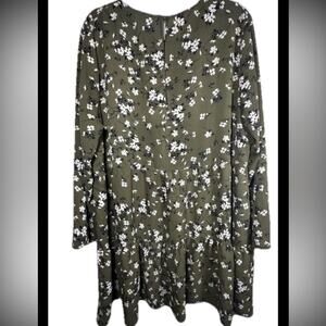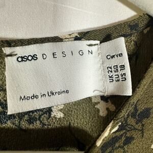 ASOS Design Curve Long Sleeve Smock Mini Dress Khaki Green Floral Dress US 18