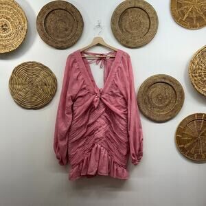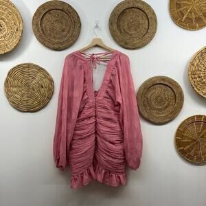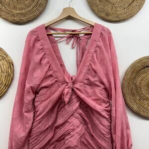 ASOS Design Curve Pink Long Sleeve Ruffle Tie Front Ruched Mini Dress 12