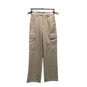 ASOS Design Faux Leather Cargo Trousers Muted Mushroom Size 2 Neutral Minimalist