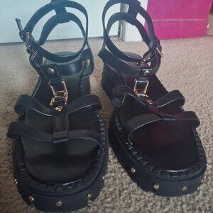 Only worn once. In excellent condition. Two adjustable ankle straps with gold buckles.
