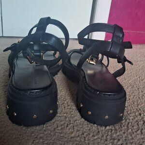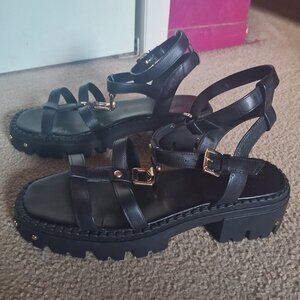 ASOS Design Forrest Leather Chunky Strappy Sandals Black and Gold | size 12 Wide