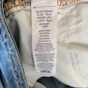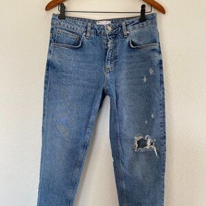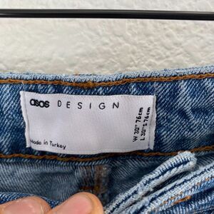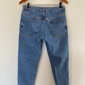 ASOS Design High Rise Distressed Straight Leg Mom Jeans Medium Wash Size 30