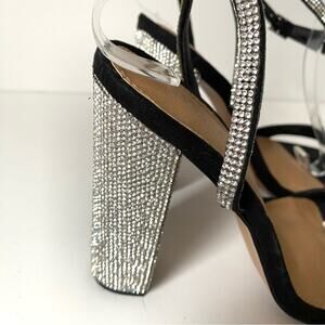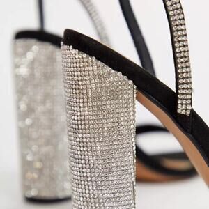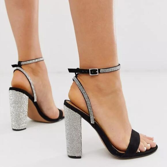 ASOS Design Hot Step Embellished Rhinestone Block Heel Black Sandals size 5 in excellent condition no box. Heel height is 4 1/2 inches