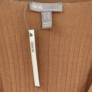 ASOS Design Knit Rib Midi Dress Faux Wrap Long Sleeve Stretchy Women US 4 Tan