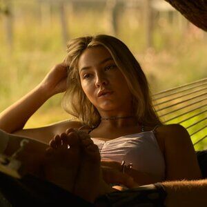 ASOS Design Lilac Crop Cami Camisole Crop Top with Ruched Front and Spaghetti Straps as seen on Sarah Cameron in Outer Banks season 2 episode 6. Same style, brand and color.