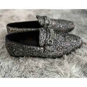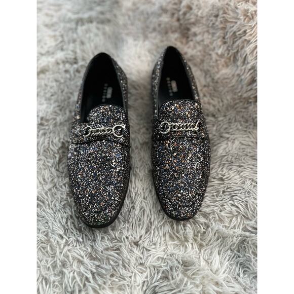 ASOS Design Men’s Loafers Black In Silver Glitter Size 10W Sparkle Shoes 43W