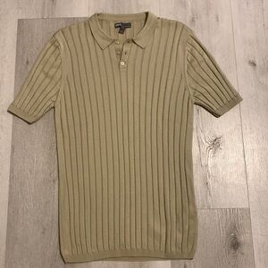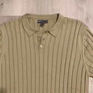 ASOS Design Men’s Muscle Fit Knit Polo Ribbed Short Sleeve tan size XL fitted