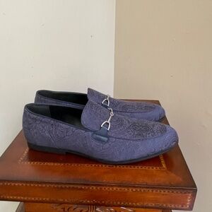 NWT! Slip on this Navy on navy subtle handsome paisley loafer with silver tone hardware. Dress up or down with this wardrobe staple! Canvas upper, man-made.. Size 13