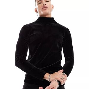 ASOS Design Muscle Fit Long Sleeve Turtle Neck Black Velour Small