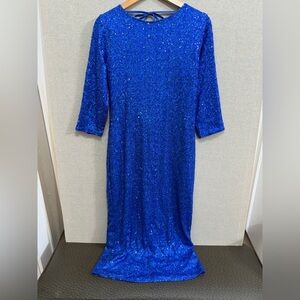ASOS Design NWT Embellished Sequin Midi Dress Open Back Royal Blue US 14