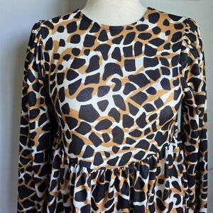 ASOS Design, NWOT, Oversized Long Puff Blouson Sleeve Animal Print Mini Dress, Size 8