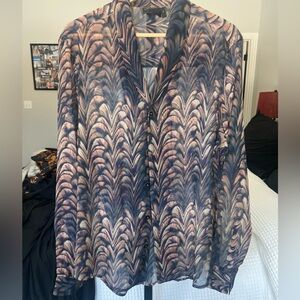 Button down blouse with built in shawl collar- abstract print