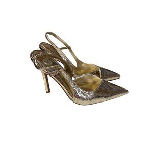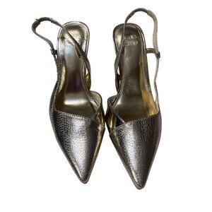 Elevate your style with these ASOS Design slingback heels. Featuring a sleek pointed toe and metallic gold finish, ideal for polished ensembles.