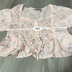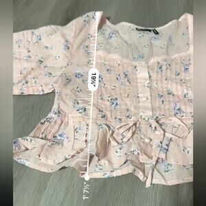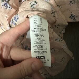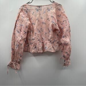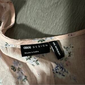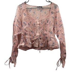 ASOS Design Pink Floral Print Button Up Pleated Long Sleeve Peasant Top Size 6