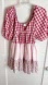Fun flowing cotton summer above knee length dress with mixed fabric prints. Puff balloon sleeves & v-neckline features.