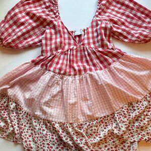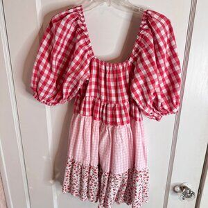 ASOS Design Pink Red Gingham Floral Tiered Summer Short Dress sz 0