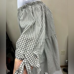 ASOS Design Plaid Off Shoulder Puff Sleeve 2 Tiered Mini Length Babydoll Dress 2