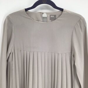 Nice ASOS pleated trapeze pleated long sleeve dress. Great for office or casual wear. Features long sleeves, pull-over style, one button at back neck, pleated throught & not lined.