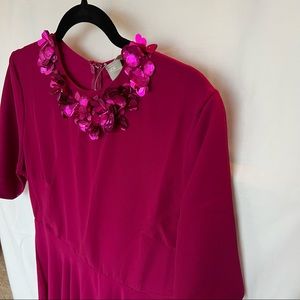 Cranberry dress, women’s dresses, red dress, dress with sequins, midi dress, tea length dress,