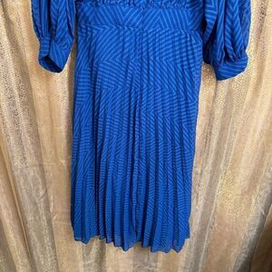 Great gently used condition, smoke and pet free home. No flaws or major signs of wear. This is semi-sheer so you will def need to wear some type of slip dress underneath it. Has a rear zipper. Pleating on the skirt.