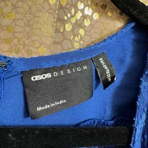ASOS Design Royal Blue Textured Floral Embroidered Midi Dress Size 8