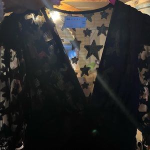 Black sheer mini dress in “Star Dobby” print. Invisible side zipper. Ruffled skirt. Brand new without tags. Never worn. Excellent Condition. ***Tags state size US8 but this dress is closer to UK8/US4.***