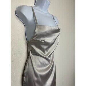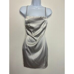 ASOS Design Satin Mini Dress Size 4 Silver Criss Cross Back Square Neck Strappy