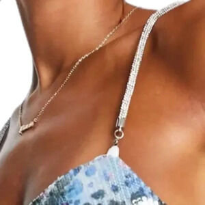 ASOS Design Sequin Diamante Strap Mini Dress blue snake print Size 0 NWT