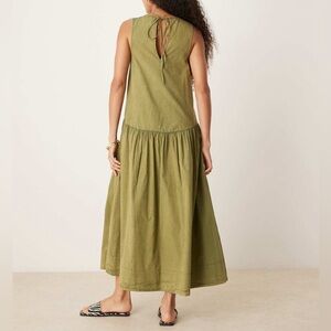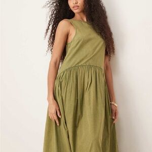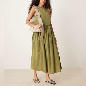 ASOS Design Slash Neck Smock Midi Dress w/ Dropped Waist in Olive - Size US 10