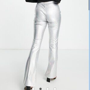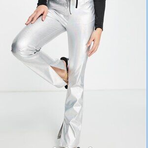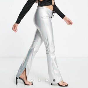 ASOS Design Sparkly Metallic Silver Flare Split Hem Pants Women's size 0