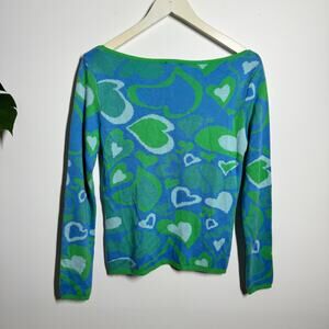 ASOS Design Top Women 4 Blue Green Wavy Heart Square Neck Lightweight 3/4 Sleeve