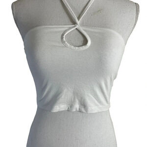 ASOS Design White Crop Top Size 4 Keyhole Neck Sleeveless Stretch Summer Casual