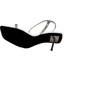 ASOS Design White Square Toe Stilleto Heel Invisible Strap Shoes ,Chrome heels