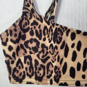 ASOS Design Women Leopard Print Ribbed Bikini Swim Top US 2