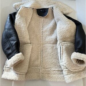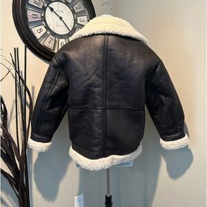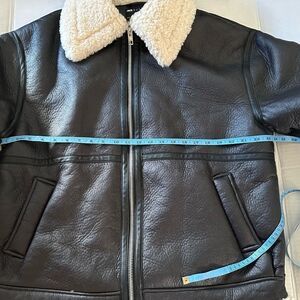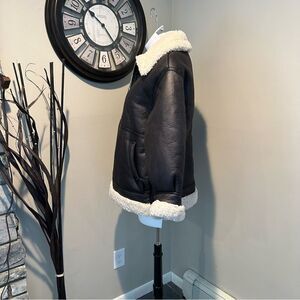 NWOT Excellent Condition. Super Cute Trendy Faux Leather Aviator Jacket with a Shearling/Sherpa Trim