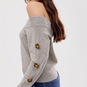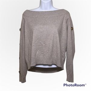 ASOS Design taupe bardot button detail long sleeve sweater Sz 14.