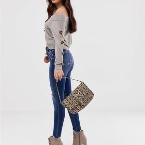 ASOS Design taupe bardot button detail long sleeve sweater Sz 14