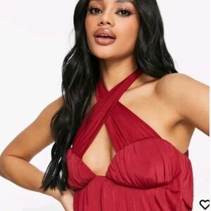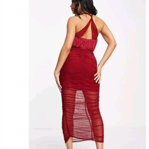 ASOS Design Nordstrom halter mesh ruched midi dress in red size 6 NWT