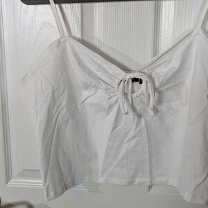 Casual, Everyday, Classic, ASOS, ASOS Designs, White, Summer, Spring, Top, Shirt, Blouse, Tank Top, Crop, Cropped, Crop Top, Cami, Camisole, Tie Front, Bow, Cutesy, Women, Woman, Women's, Mid Sized, Mid Size, Size 14, Plus Size, Size L/XL, Made in Bangladesh, Cotton, Elastane, Stretchy, Stretch, O-Ring, Loop, O Ring, Bustier