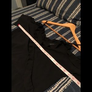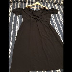❤️Pictures don’t do this dress justice❤️ Gorgeous Midi Cold Shoulder Black Dress. Super Flattering, Ruffling around the Shoulders & Bust, Sexy Spaghetti like Straps, Rounded Back, V Surplice Front